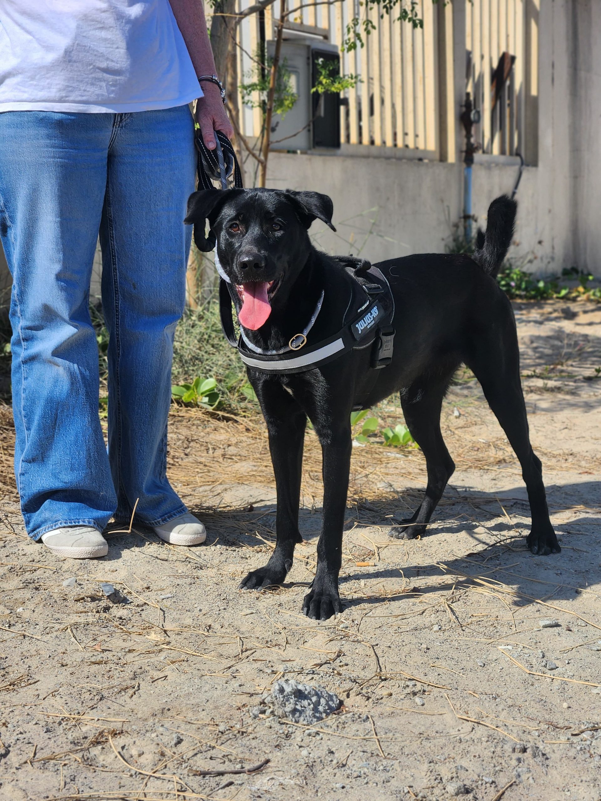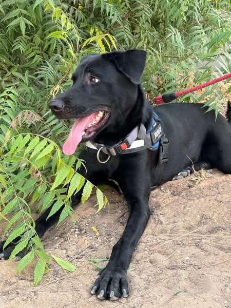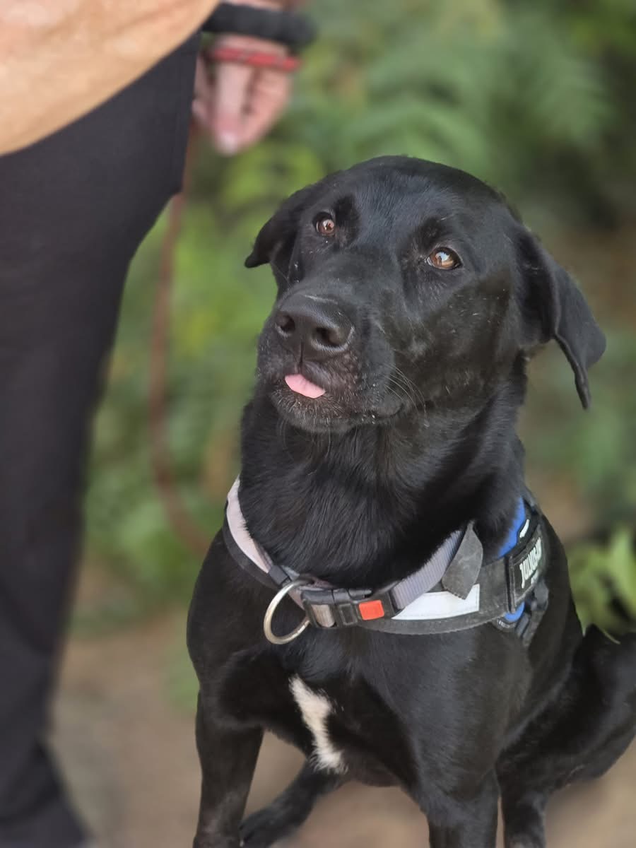 Black Labrador mix born in January 2024. She's loving, gentle, full of energy, and ready to find her forever home she has always deserved. Rosie's start in life was cruel - she was kept tied up by an abusive family who used a stick to control her. When we found her, she was frightened but still wagging her tail, still hopeful. That's who Rosie is - no matter what she's been through, she chooses love. Today, Rosie is thriving. She loves people, enjoys her walks, and is wonderful with other dogs. She's smart, treat motivated, and already knows her basic commands. She's still young and full of enthusiasm, so she can jump up a little when excited - but with a bit of guidance, she'll be the most loyal, well mannered girl. Rosie is healthy, vaccinated and ready to travel to her forever home. She's be happiest with an active person or family who loves the outdoors - someone who will let her run, hike and live life freely, the way she's always dreamed of. Her new owners must be experienced with handling a bigger dog with a big personality.